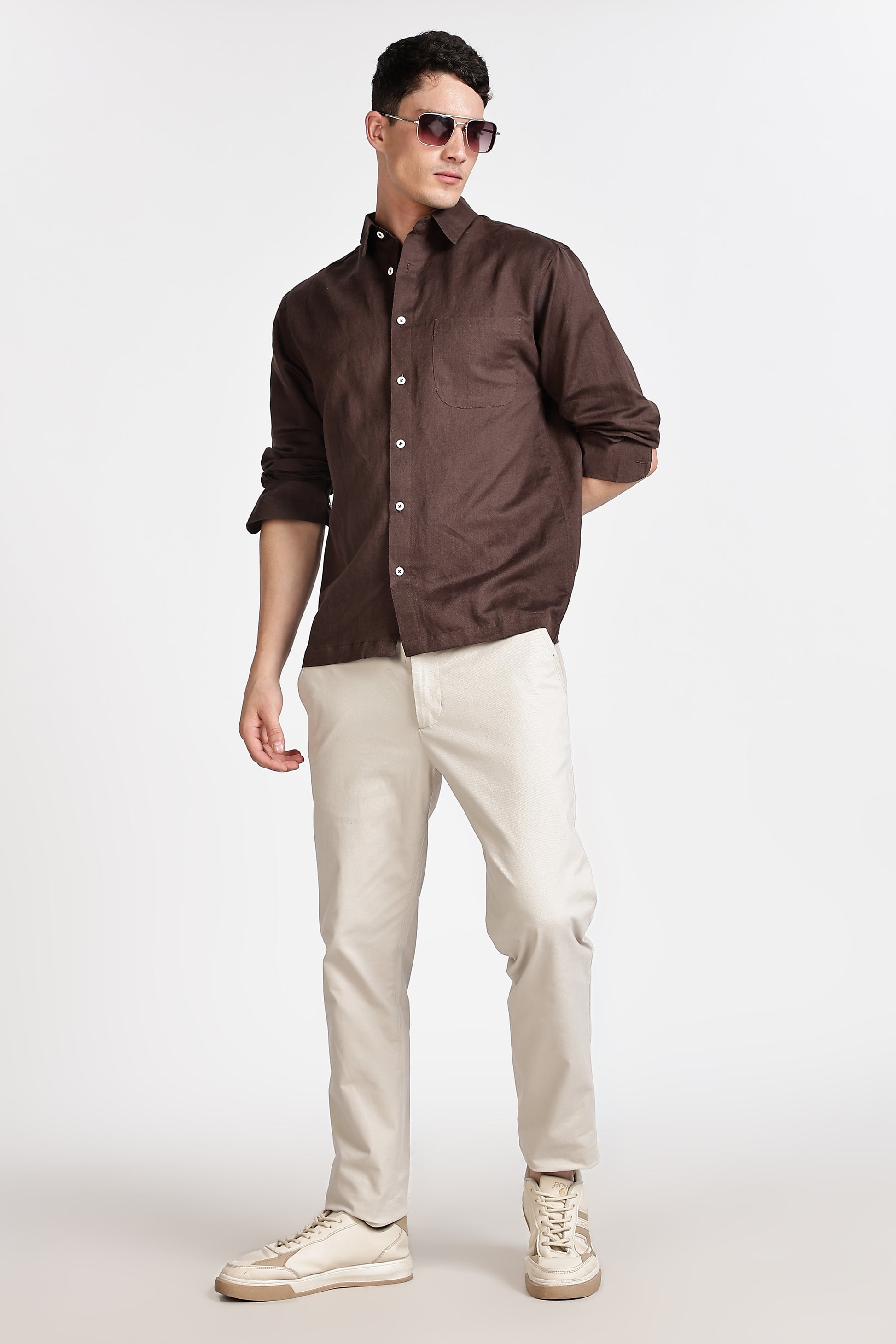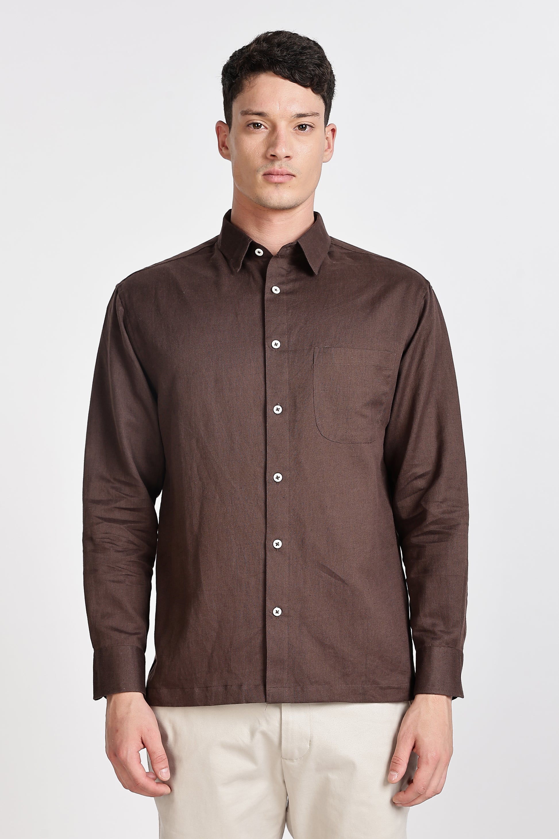 THIS REGULAR-FIT SHIRT IS MADE FROM A BREEZY BLEND OF COTTON AND LINEN- SOFT,
